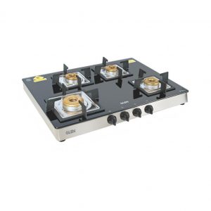 4 Burner Glass Gas Stove 1 High Flame 3 Forged Brass Burner 70 CM (1048 GT SQFB)