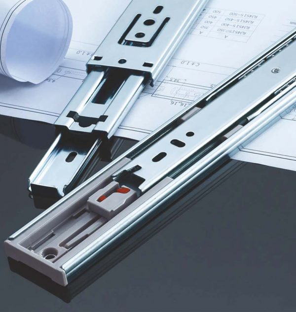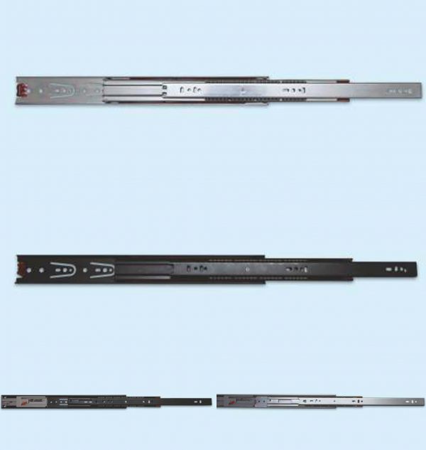 This is an upgraded slide based on the conventional B.B. Slides. By building into the slide a soft-close device, this slide provides a seamless experience. Applicable in office, home and other occasions that require full-extension drawers, various sizes available. Thanks to the purpose-built reset device, installation is hassle-free.