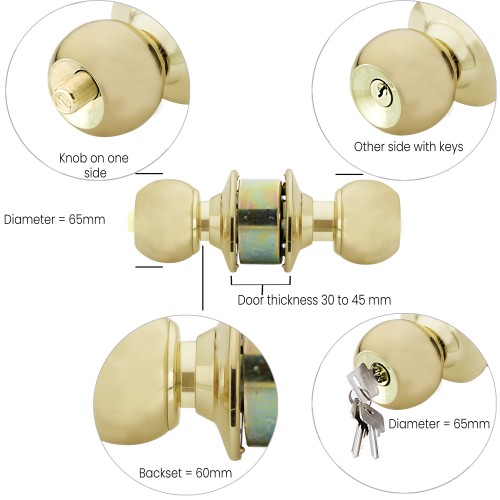 • Backset 60 mm & Door thickness 30 to 45 mm