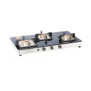 3 Burner Black Glass Gas Stove Forged Brass Burner Flame Failure Device Auto Ignition (1038 SQ GT FB FFD AI)