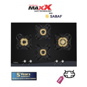 Hindware HOB comes with brass burner which are highly durable and efficient, perfectly suitable for Indian cooking style. Cast iron supports provide great stability and support to your cooking ware. Metallic knobs provide a shiny, sleek look to the hob. The special enamel coating on drip tray is able to withstand wear and tear during regular use. Our hobs are covered with toughened glass, measuring 8mm in size. The unique auto-ignition feature helps to light the hobs without the need for any lighter or matchstick. Hindware Premium range HOB comes with Flame Failure Device (FFD) in all burners. FFD provides you complete protection by stopping the gas supply in case the flame goes off while cooking.