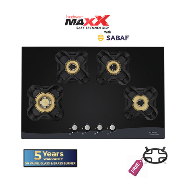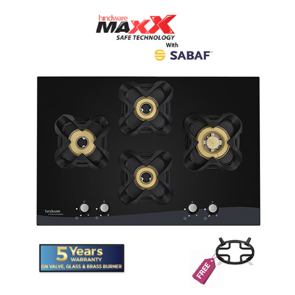 Hindware HOB comes with brass burner which are highly durable and thermal efficient, perfectly suitable for Indian cooking style. Cast iron finish round pan supports provide great stability and support to your cooking ware. Ergonomic Bakelite knobs which are durable and can withstand high temperature. Our hobs are covered with toughened glass, measuring 8mm in size. The unique auto-ignition feature helps to light the hobs without the need for any lighter or matchstick. The dexterously crafted metal drip trays of our cooktops are made of stainless steel.